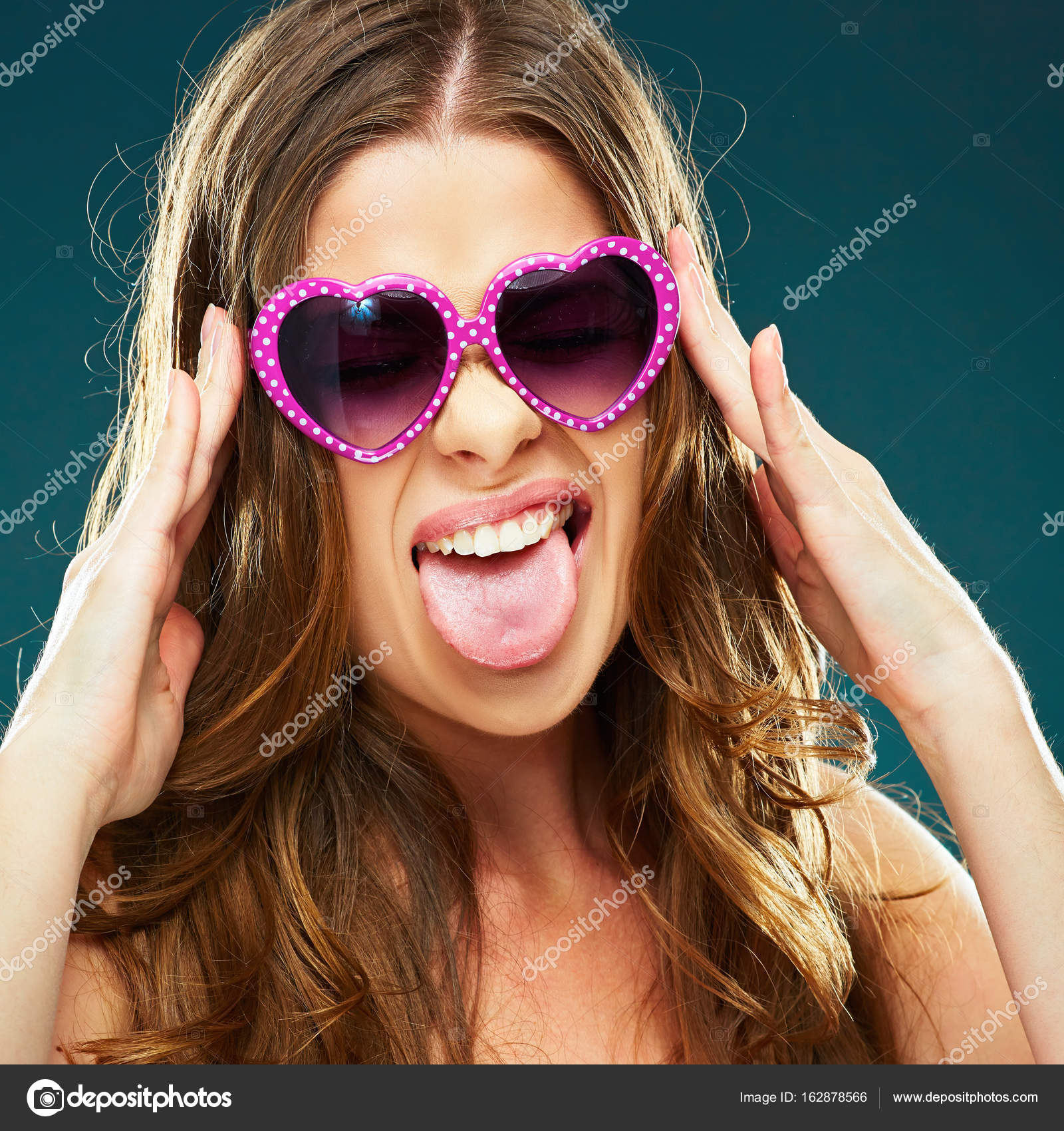 Bad Girl Close Up Face Portrait Wearing Heart Sunglasses And Sh